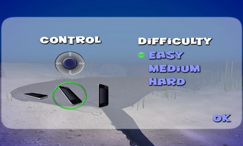 您可以使用加速度計或使用虛擬遊戲板控制鯨魚。